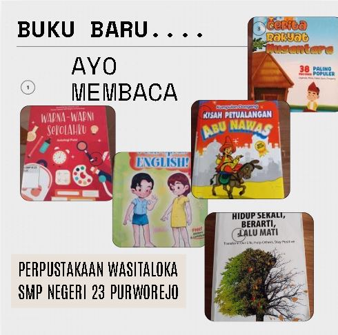Kami dengan senang hati mengumumkan bahwa Perpustakaan Wasitaloka di SMP Negeri 23 Purworejo telah menambah koleksi buku baru! Buku-buku ini sekarang tersedia di tempat display khusus yang telah kami siapkan. Semua siswa dapat segera meminjam dan menikmati buku-buku ini.